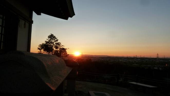 午前6時40分ごろより南東の空が紅に染まり始め遠く松平の山並みの向こうから神々しい太陽が拝めます。