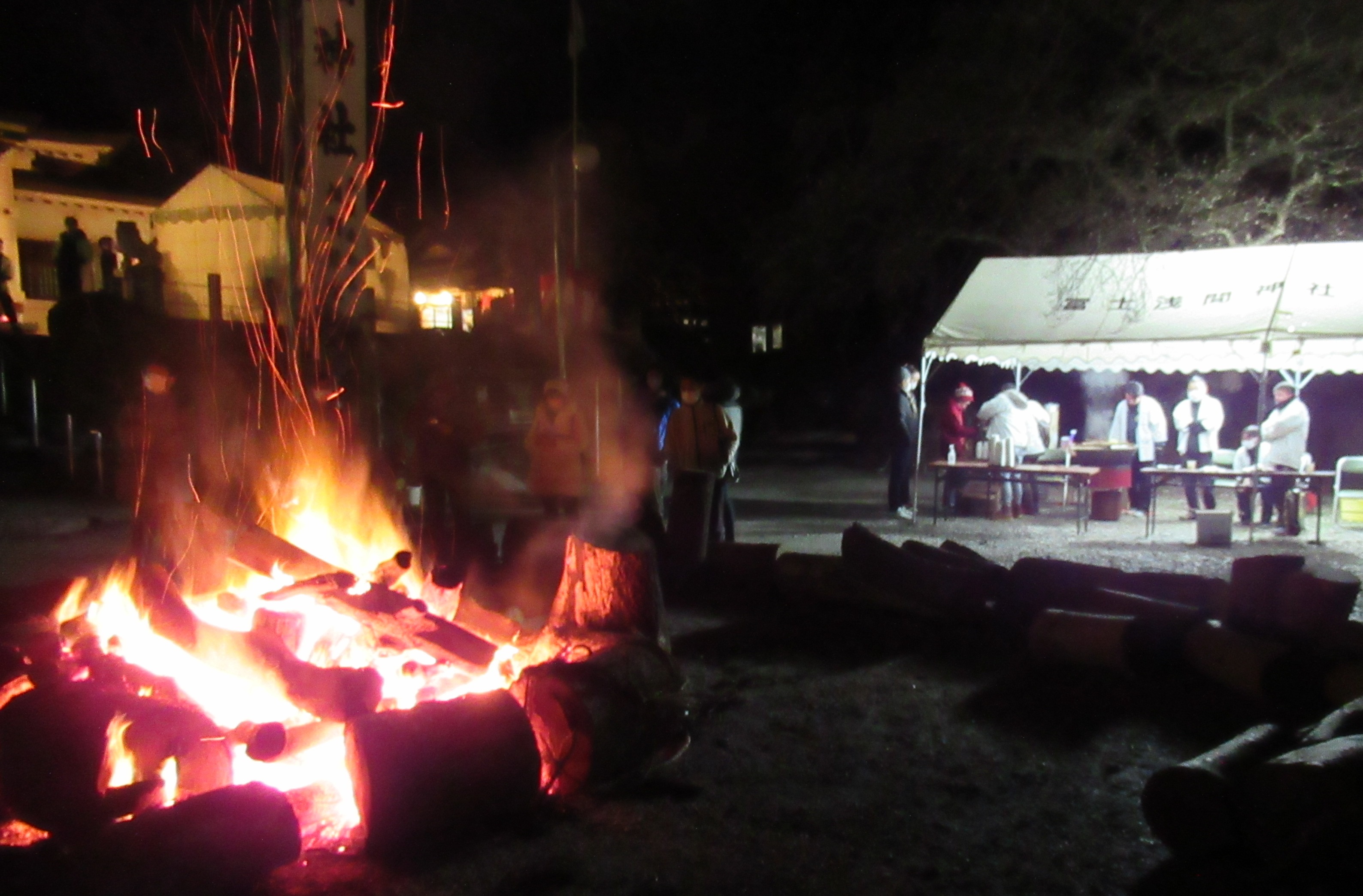 0:00よりNEWYEAR カウントダウン。天気が良ければ初太鼓打ち初め。日本の銘酒飲み比べ・ 豚汁・お菓子・ 種銭授与(先着1000名様)、授与品を受けた方には「長寿銀杏」配布。